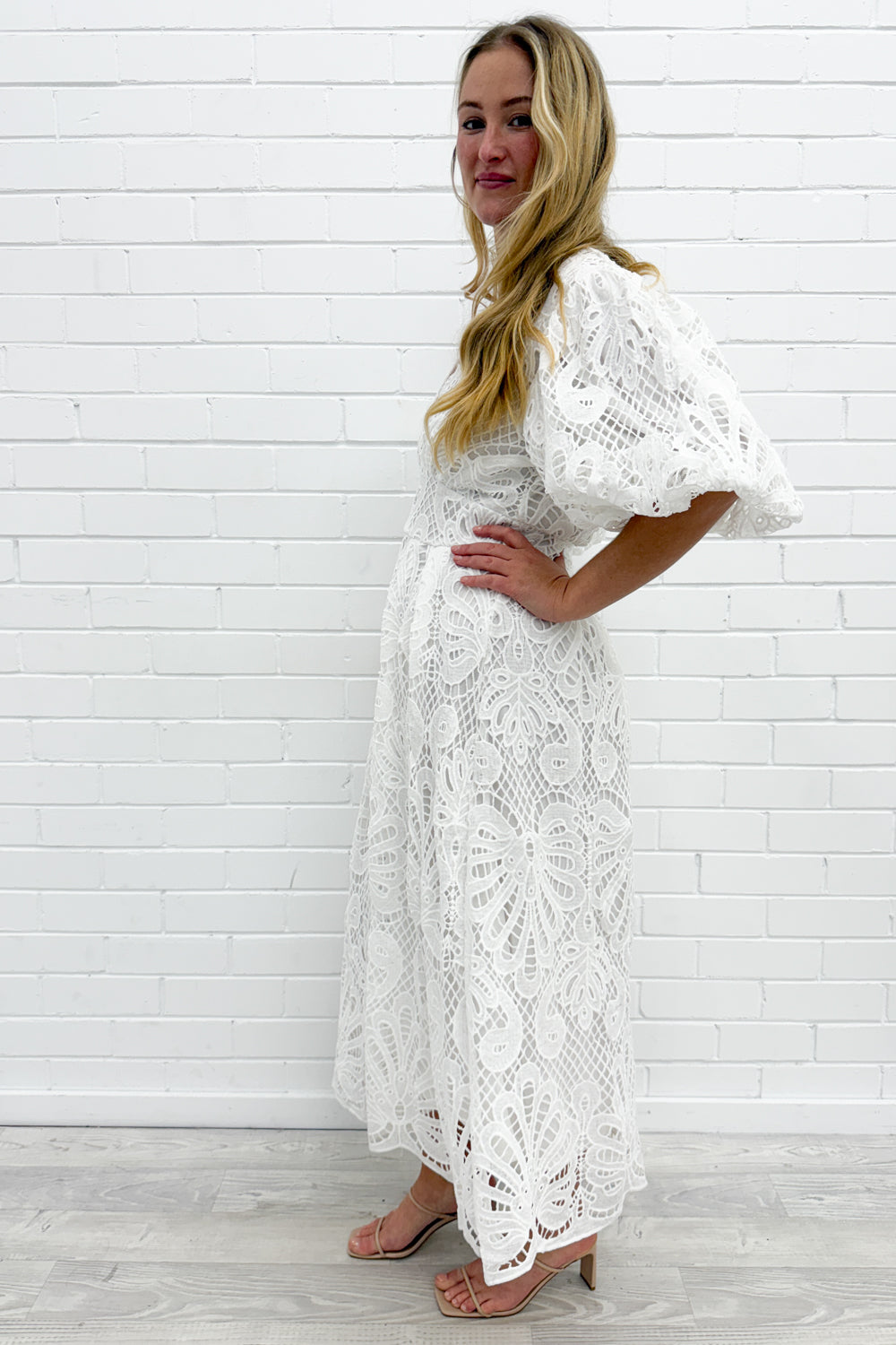 Just stunning. Slightly structured featuring the most beautiful embroidery detail, you will look and feel a million bucks in this one. The sleeves, the V neck, the empire line flatters, and the shape in general is just divine.